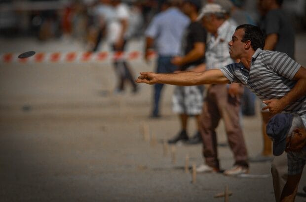 Em Tróia, ainda, nas Férias Activas 1988 e 1989, o autor participou também num curioso jogo em que actuavam quatro equipas de dois elementos cada uma. Duas equipas de cada lado. Malhas de madeira, de tamanho normal, dispondo cada jogador de uma. Começam os lançamentos os jogadores que se encontram num dos lados, primeiro os de uma equipa, depois os da outra. Jogam em seguida os do lado oposto. O jogo termina quando cada interveniente fizer dois lançamentos. A malha mais próxima do paulito (ponta aguçada na parte superior e altura de 20 cm, aproximadamente) vale dois pontos e mantém-se até os jogadores do lado contrário terem jogado na tentativa de melhorarem a posição. O derrube directo vale seis pontos e a malha é colocada sob o pino. O derrube indirecto não conta. Ganha a equipa que em três jogos fizer melhor pontuação.